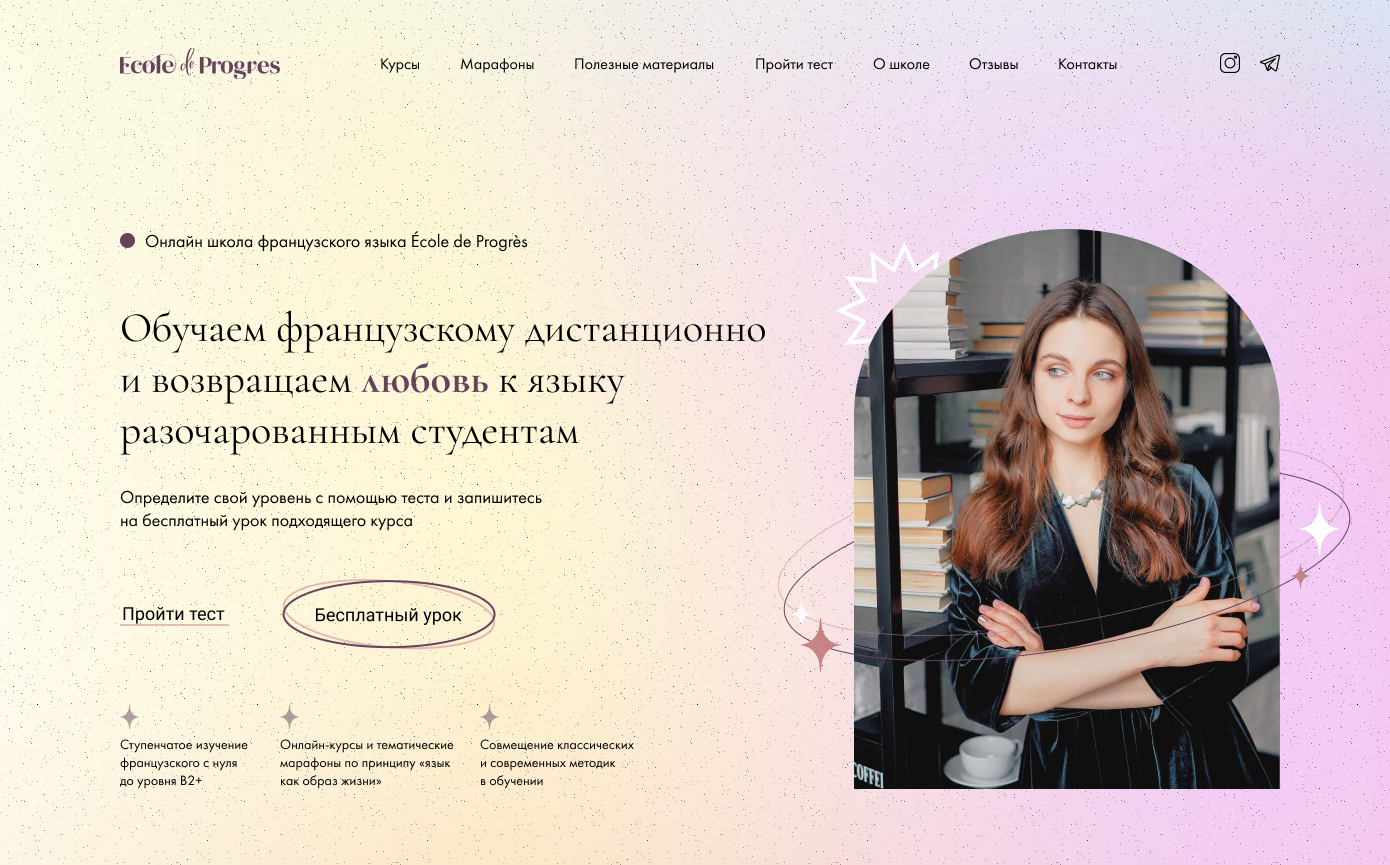 Перед разработкой дизайна мы подбираем референсы — примеры сайтов, которые нравятся вам по стилистике, шрифтам, цветам.